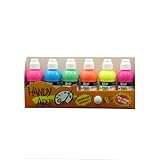 Overall results were very good, especially as the markers were easier to use than paint, and covered a lot more area than the usual marker tip. The colors are bright and attractive, on the lighter side of the palette, but even the yellow was not too pale to show up well on the poster. The marker design allows for dabbing on the color, or working the tip somewhat like a brush stroke. The product comes with a screw-on cap for storage; we'll have to wait and see how well the markers retain their effectiveness without drying out. The marker set is somewhat more costly than standard tempera paint sets; but, appears to have met expectations overall.