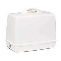 Item arrived promptly. Case is very well constructed, sturdy and has strong and secure closure devices. I have no fear of the top and bottom portion coming apart with my heavy sewing machine inside. Sewing Machine fits easily into bottom portion with space to spare for cord etc. I couldn't be happier with my purchase. The price is very reasonable for such fine quality.