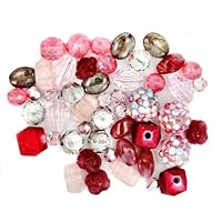 These beads do not come close to reflecting the colors shown in the photos. They are, instead, a dark, muted pink, taupe, and peachy-pink. There are exactly 6 glass beads, 8 6mm acrylic beads, with the balance being plastic and one with plastic "rhinestones." However, if that is what you're looking for in material, they do look pretty if you don't look too close. Obviously, I was less than thrilled but you get what you pay for!